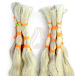 Our Pure Grey Bulk Hair consists of naturally grey strands that are carefully selected for consistency. The cuticle structure remains intact, keeping the hair smooth and strong. With proper alignment, this hair resists tangling while maintaining its natural luster. Blessed Hair ensures high strand quality, providing a well-structured and refined result.